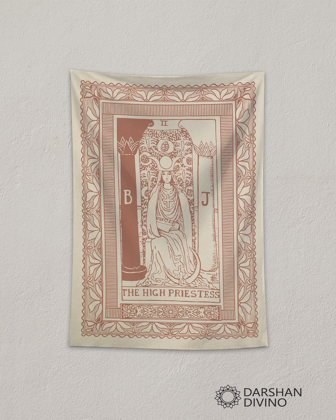 Añadi una presencia mística y sagrada a tu hogar con nuestro tapiz de La Suma Sacerdotisa (The High Priestess). Como guardiana del subconsciente y los secretos ocultos, este arcano mayor invita a la introspección y al despertar de la intuición.