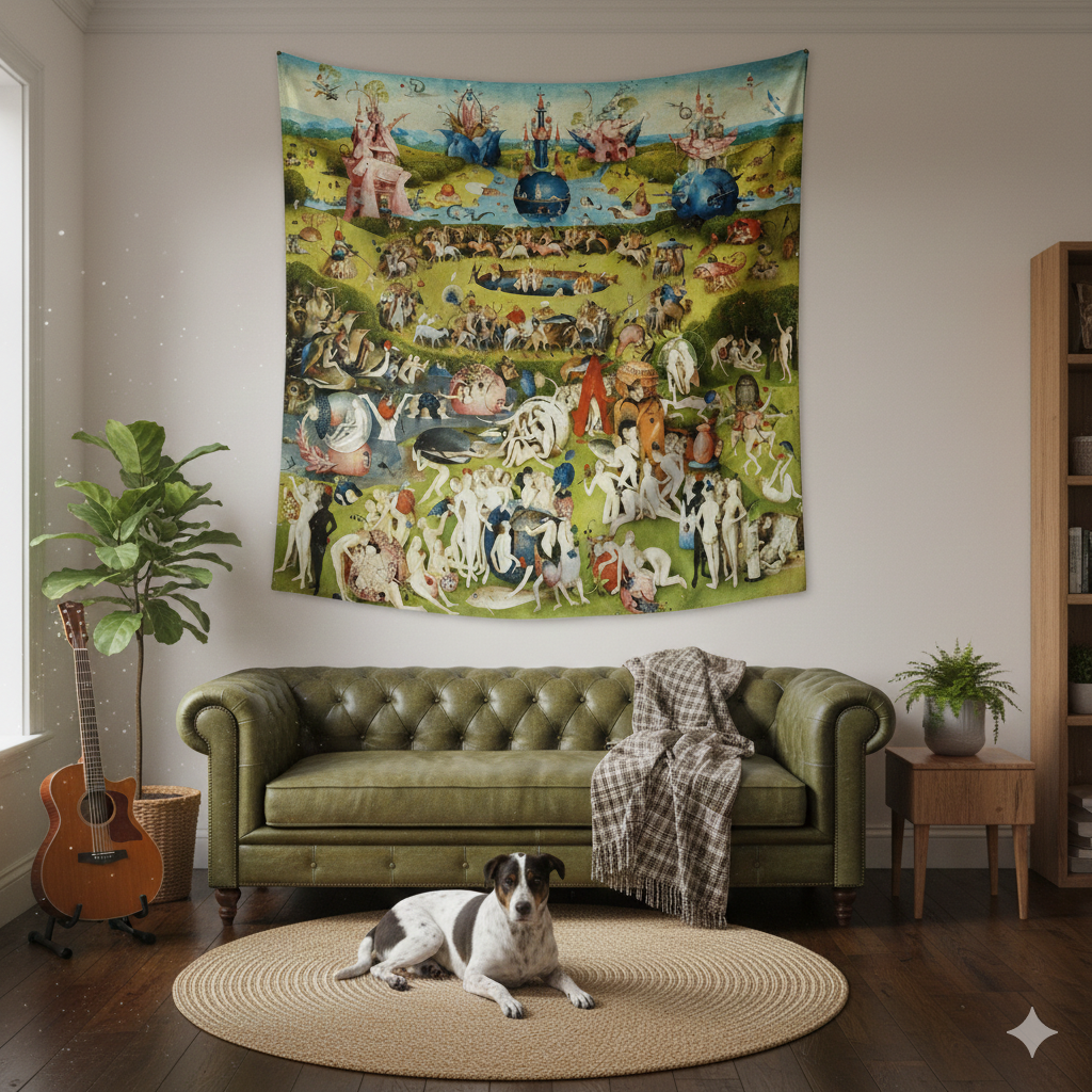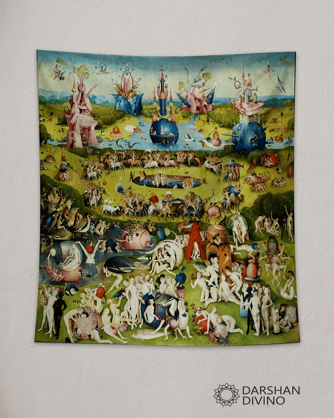 ¿Cómo se vería una multitudinaria fiesta al aire libre en donde las únicas condiciones para el ingreso serían deshacerse de la ropa, de la ética y de la moral? Bueno, exactamente esto que vemos aquí. La gran pieza central del tríptico nos muestra cómo era la vida antes del Diluvio Universal.