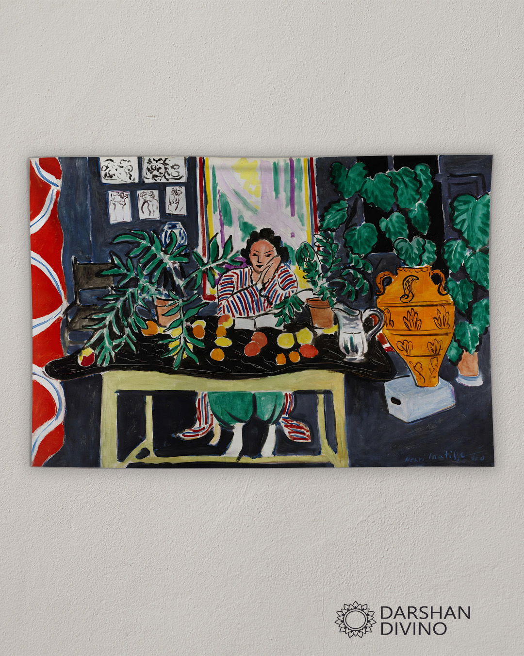 Más que representar un interior realista, “Interior con vaso etrusco” celebra la decoración, el placer de la forma y el color, y la idea de que el espacio habitado puede ser una obra de arte en sí mismo.