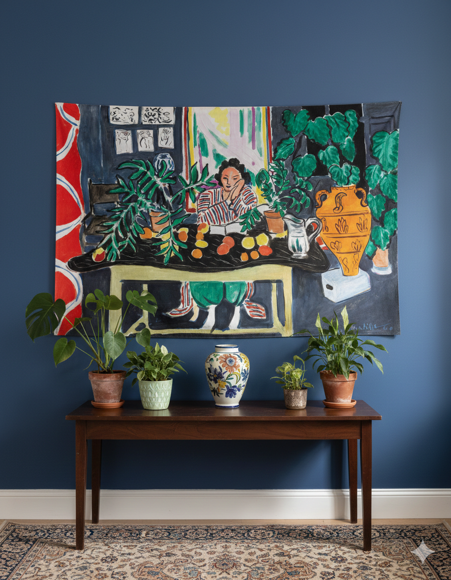 Es una obra que refleja su fascinación por los espacios íntimos y decorativos, llena de color, patrón y equilibrio entre lo real y lo imaginado.