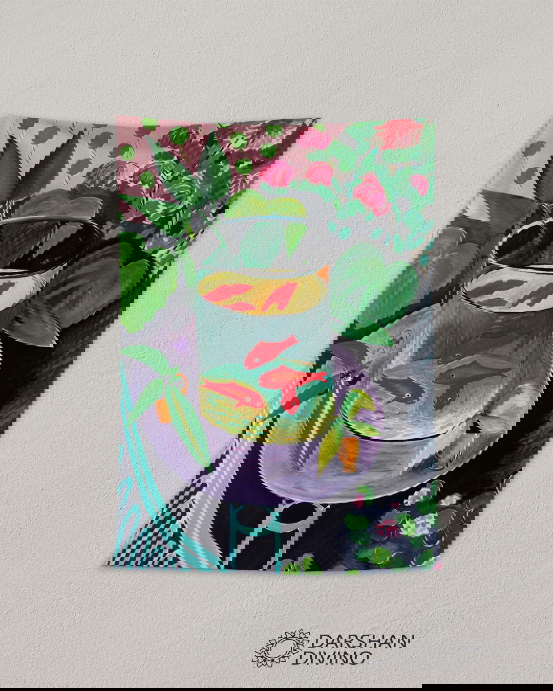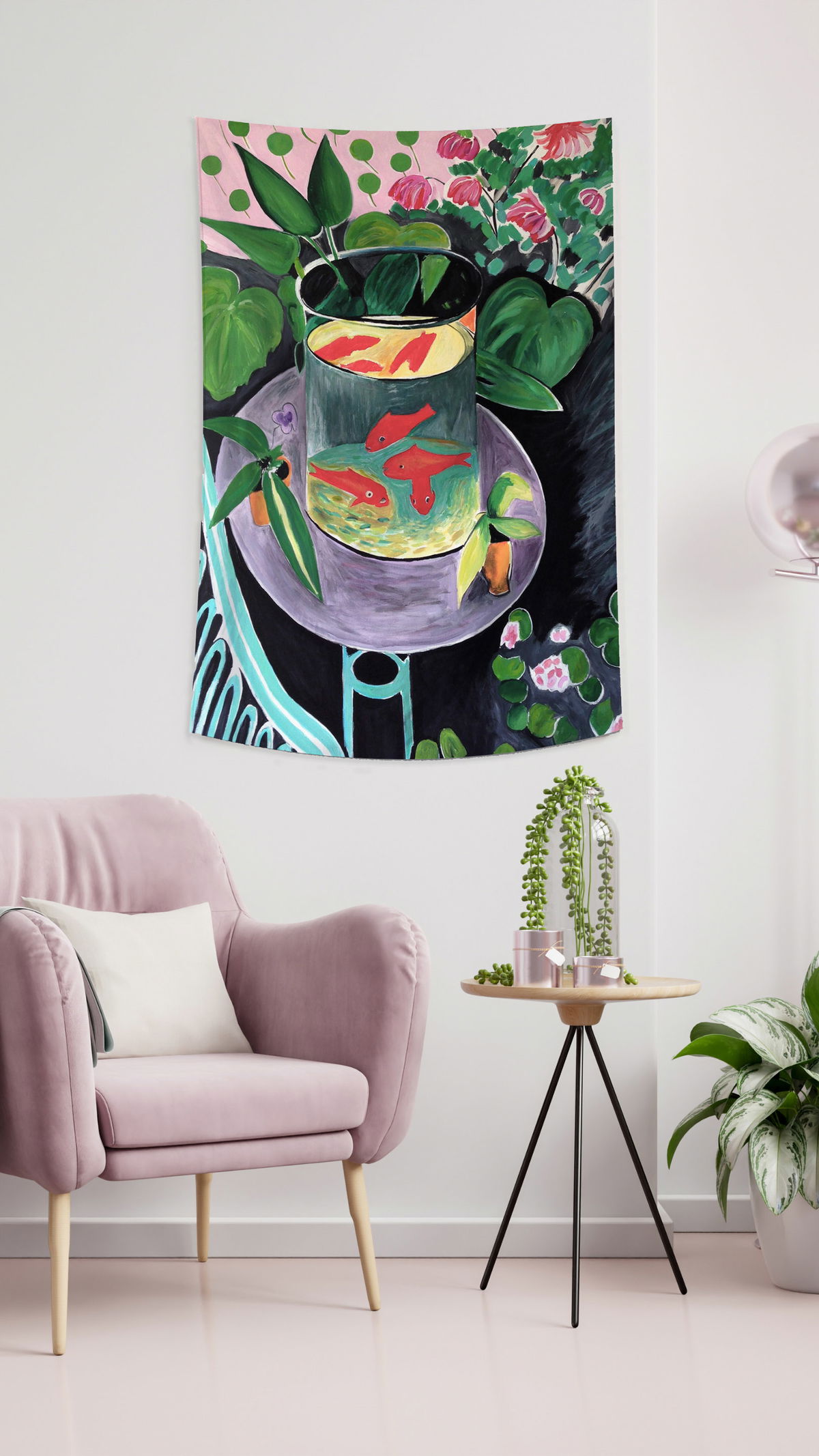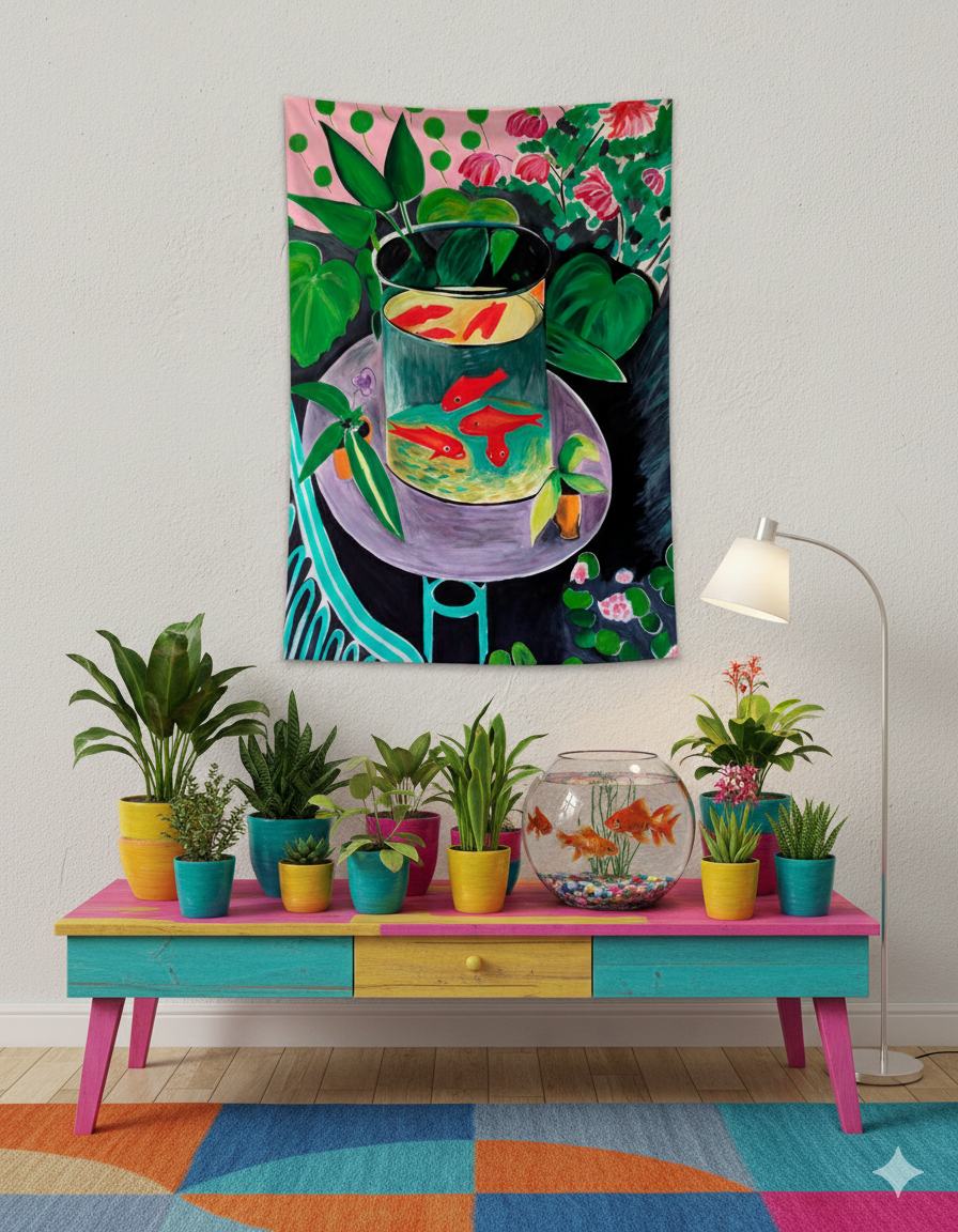 Es una de las representaciones más perfectas gracias a la armonía de las soluciones, composicional, rítmica y cromática . Matisse eligió un punto de mira elevado ,estableciendo la base de la composición en el círculo de la mesa en el acuario. El movimiento circular de las lineas , cerradas y suaves, que repiten la representación central , los sonoros colores- verde, rojo, rosa, lila - forman un acorde lineal y colorístico, asombroso por su belleza.