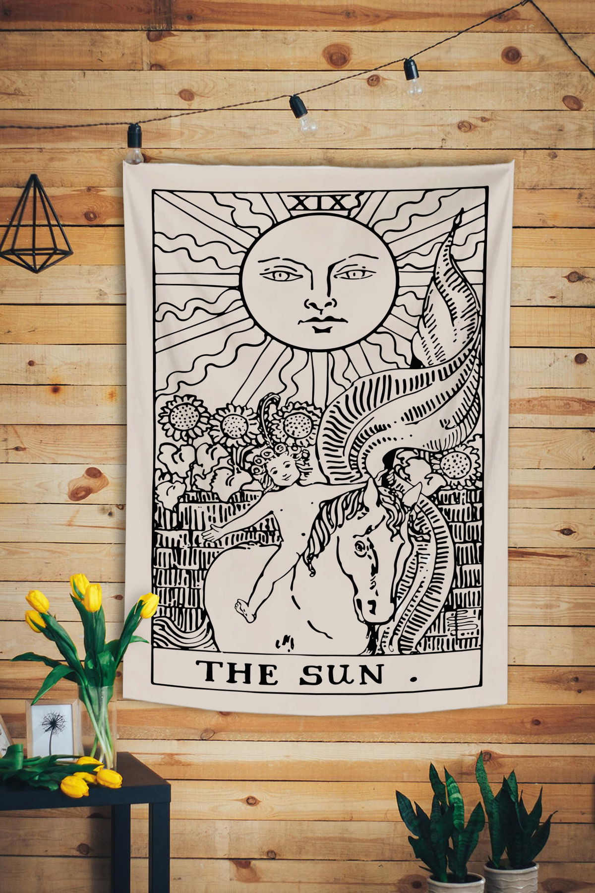 Si buscas transformar la vibra de tu cuarto, el tapiz de El Sol es la pieza clave. En el Tarot, esta carta representa la alegría, el éxito y la claridad. Es el diseño perfecto para atraer buenas energías y despertar con optimismo cada mañana. Hecho en tela suave con caída ligera, ideal para colgar sobre la cama o en tu zona de estudio. ¡Deja que brille tu espacio!