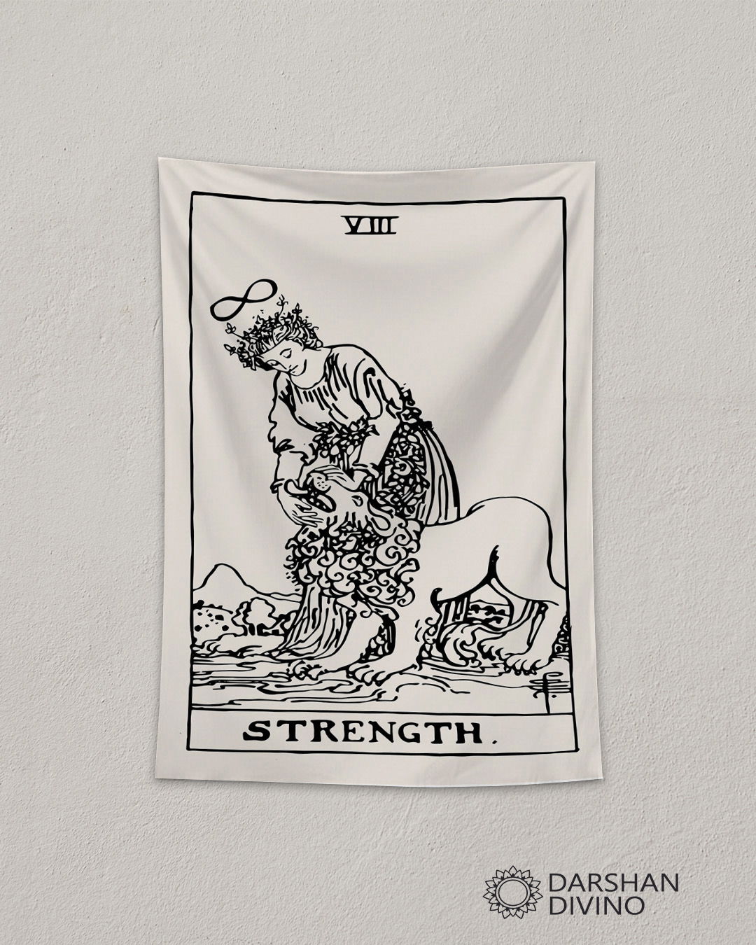 Tu fuerza interior en tu pared 💪✨ La carta de La Fuerza nos recuerda que el verdadero poder no viene de la violencia, sino de la compasión, la paciencia y el dominio de nuestros propios miedos. Es el diseño perfecto para ese rincón donde buscás motivación diaria. Confeccionado en tela suave que cae con total naturalidad, este tapiz aporta una energía de serenidad y confianza a tu habitación.