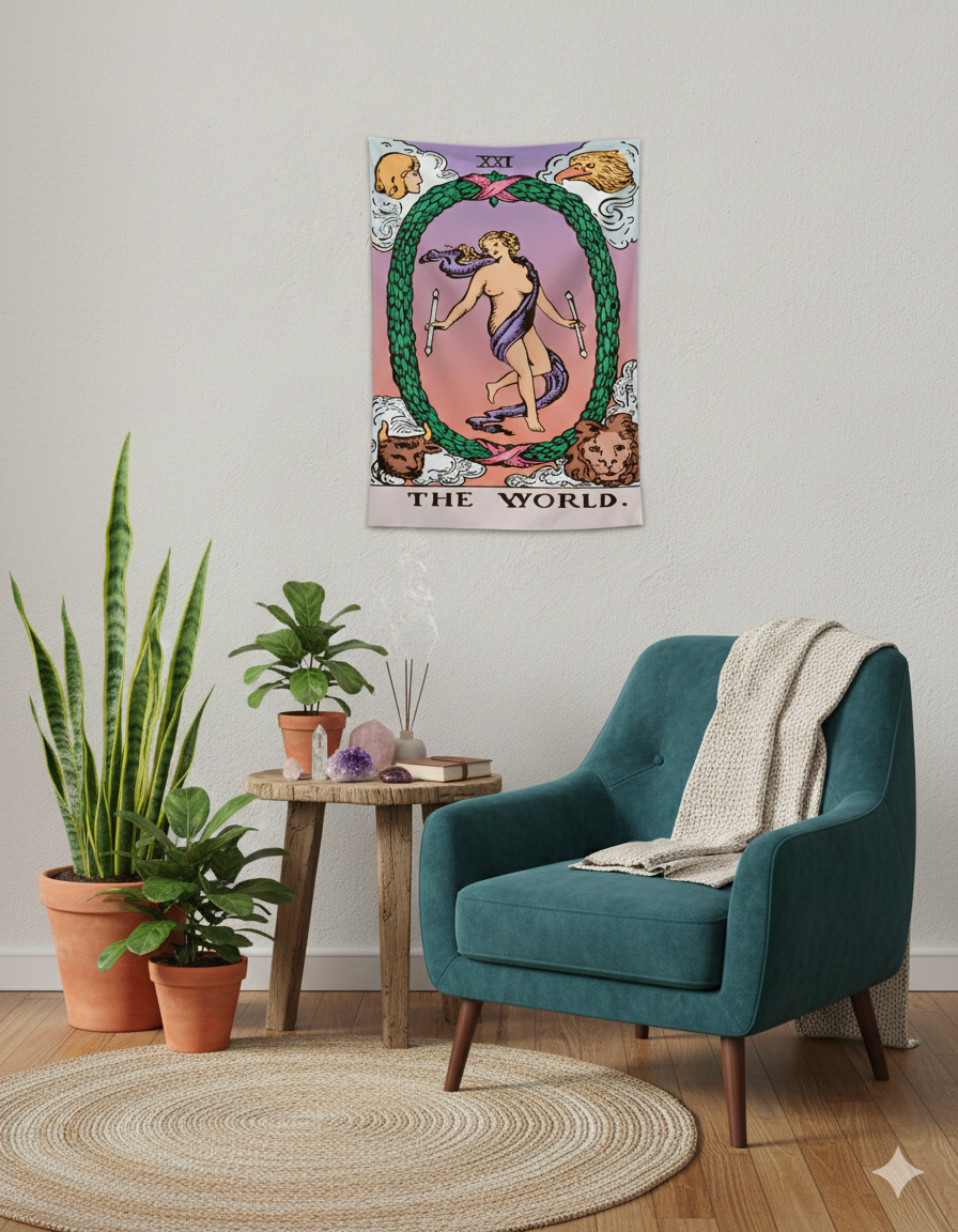 Tu mundo, en tus colores favoritos 🌸✨ Celebrá tus metas cumplidas con una energía mucho más suave. Nuestra edición Pastel Rider de El Mundo es la combinación ideal entre éxito y delicadeza. Con sus tonos lilas y rosados, este tapiz transforma la carta de la plenitud en una pieza decorativa soñada, perfecta para crear un ambiente de paz y satisfacción en tu cuarto. Fabricado en tela con caída natural, es el detalle final que tu mundo estaba esperando. ¡Hacé que tu espacio brille con armonía!