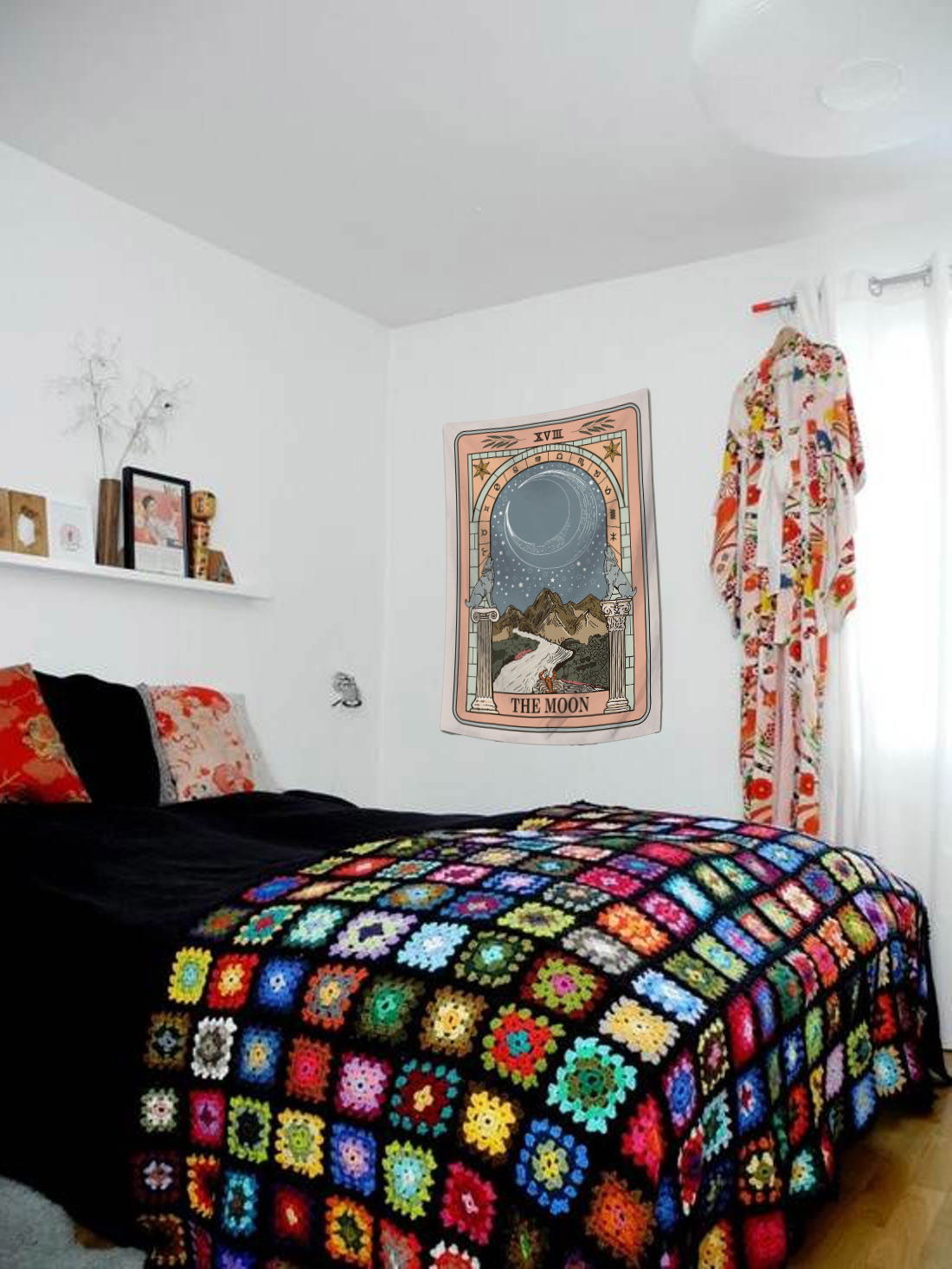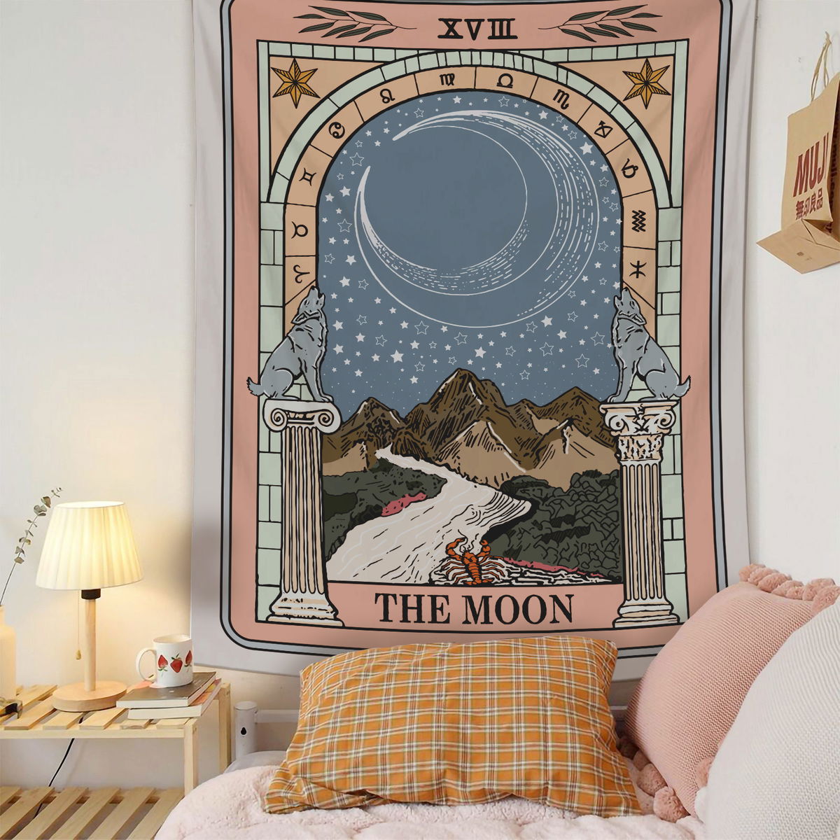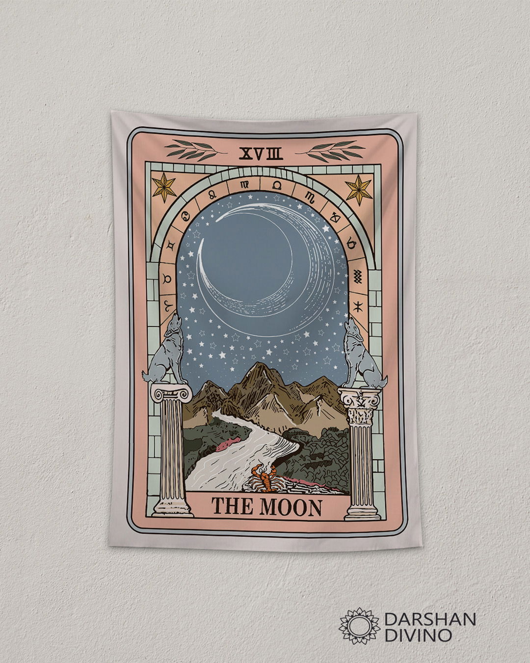 Un portal a tu intuición 🌌✨ Dejá que la magia del color transforme tu espacio con nuestro tapiz Luna Portal. Esta pieza única combina el simbolismo profundo de la carta XVIII con una paleta cálida y sofisticada de tonos tierra y azulados. Con su arco zodiacal y los lobos guardianes custodiando el camino, es el diseño perfecto para quienes buscan una decoración que inspire paz y conexión espiritual. Hecho en tela suave con caída natural, ¡es como tener una ventana a otra dimensión en tu propia pared!