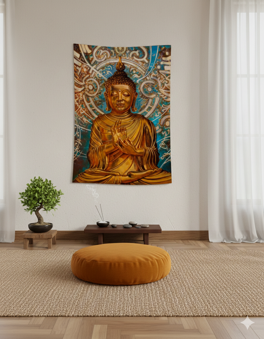 Encontrá tu luz interior con el Buda de Oro ✨🧘♂️ ¿Buscás un refugio de paz en tu día a día? Nuestro tapiz "Buda dorado" es el recordatorio perfecto de la calma que reside en tu interior. Con su imponente presencia dorada sobre un fondo de símbolos sagrados, esta pieza irradia una energía de equilibrio y compasión. Ideal para presidir tu rincón de meditación o darle un toque de sabiduría ancestral a tu living. ¡Dejá que la iluminación guíe tu camino! 🌸🙏