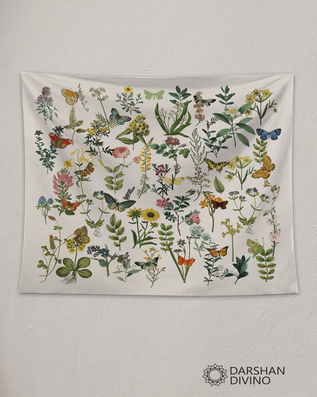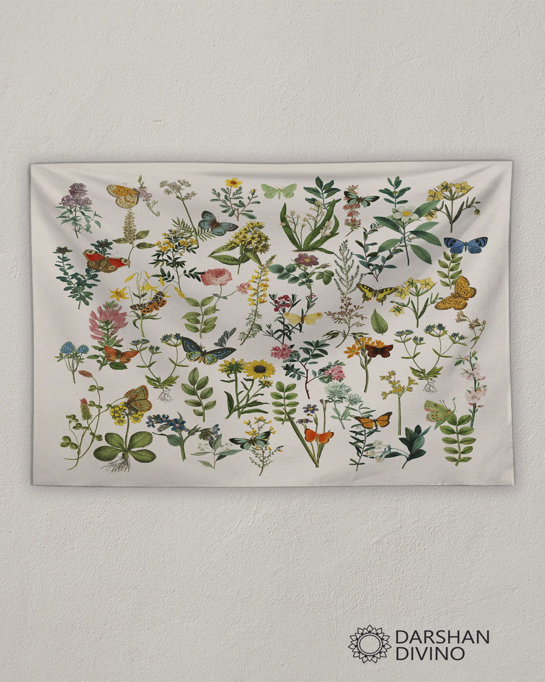 La primavera eterna en tu pared ✨🌸🦋 ¿Por qué elegir entre flores o mariposas cuando podés tenerlo todo? Nuestro tapiz "Flores Silvestres" es una celebración de la biodiversidad en su estado más puro y alegre. Con su formato horizontal, es la pieza ideal para colocar sobre un sillón o la cabecera de la cama, transformando tu habitación en un prado lleno de vida y color. ¡Un diseño que respira libertad y frescura natural! 🌿🧡