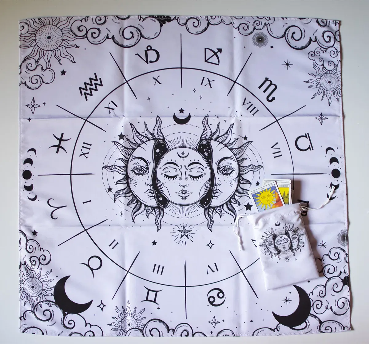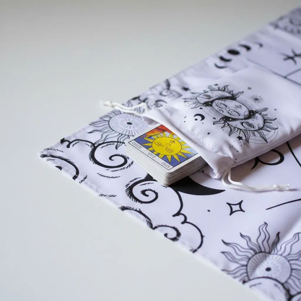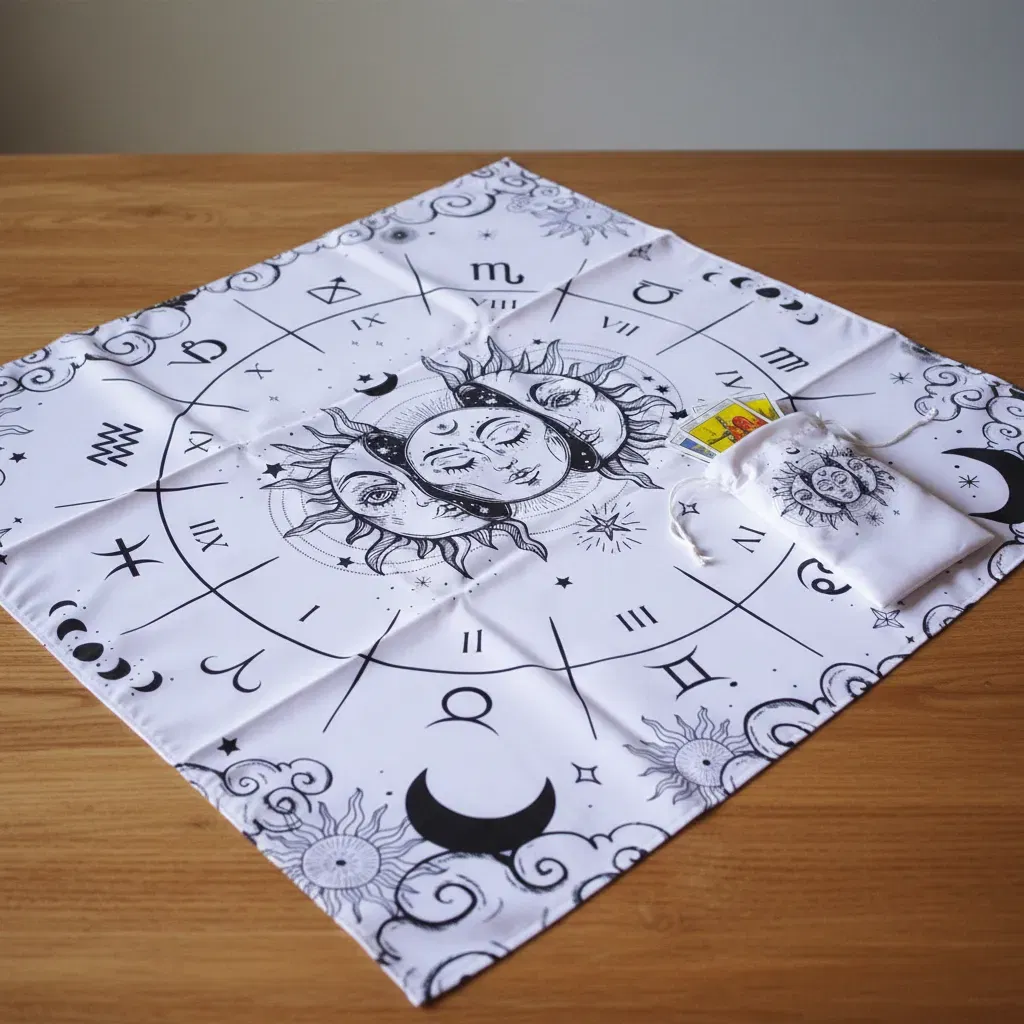 Paño de Lectura Profesional: Con una medida de 70cm x 70cm, ideal para realizar desde tiradas rápidas de tres cartas hasta despliegues complejos.