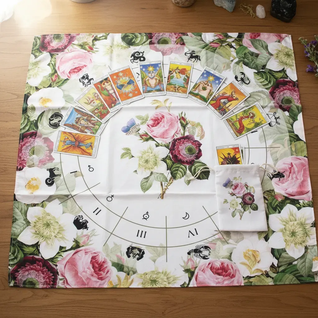 2. Bolsa para Cartas haciendo juego: Incluye una funda de 18cm x 10cm aprox. con el mismo estampado, perfecta para proteger tu mazo (Rider Waite, Marsella, Oráculos) y mantener su energía resguardada.