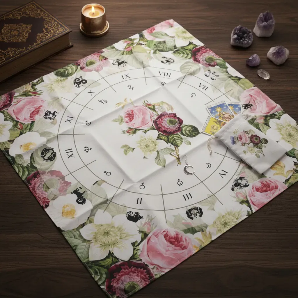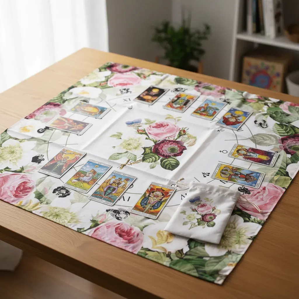 1. Paño de Lectura Profesional: Con una medida de 70cm x 70cm, ideal para realizar desde tiradas rápidas de tres cartas hasta despliegues complejos.