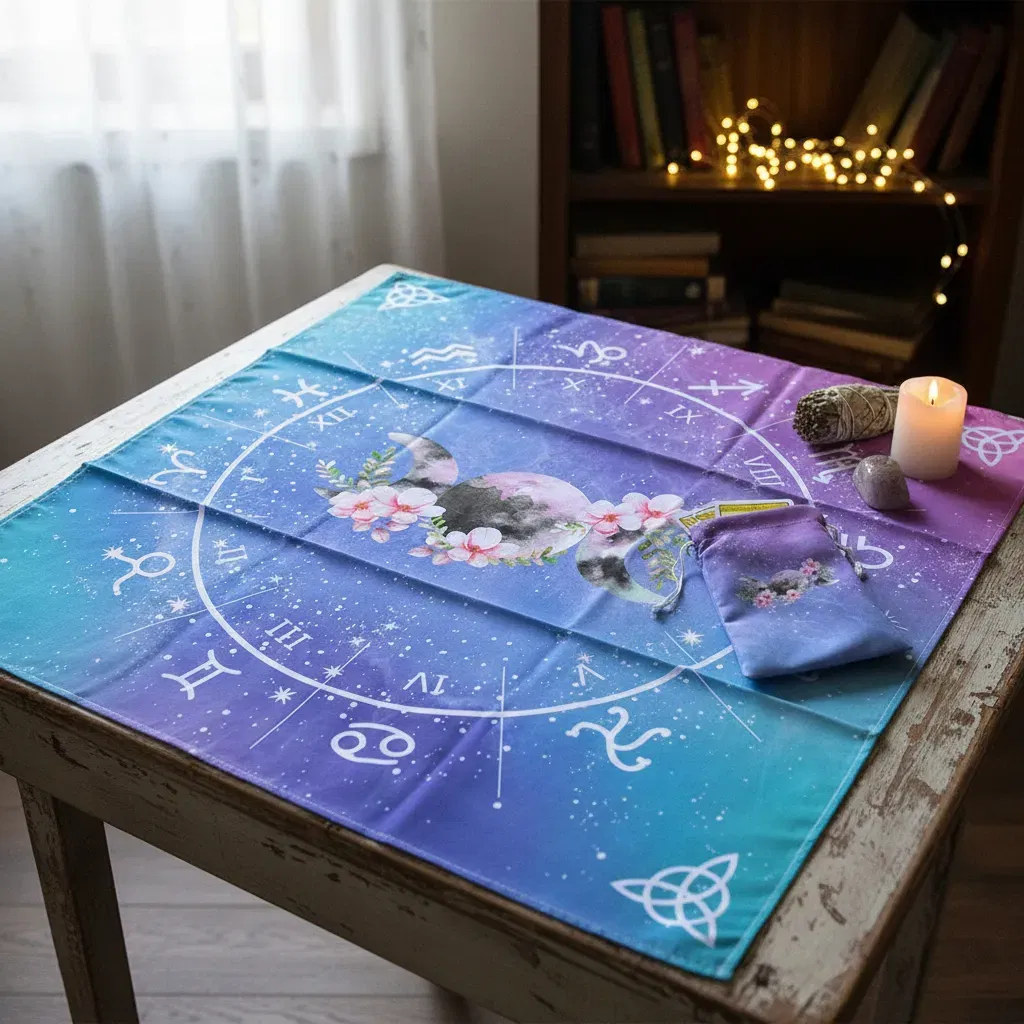 1. Paño de Lectura Profesional: Con una medida de 70cm x 70cm, ideal para realizar desde tiradas rápidas de tres cartas hasta despliegues complejos.
