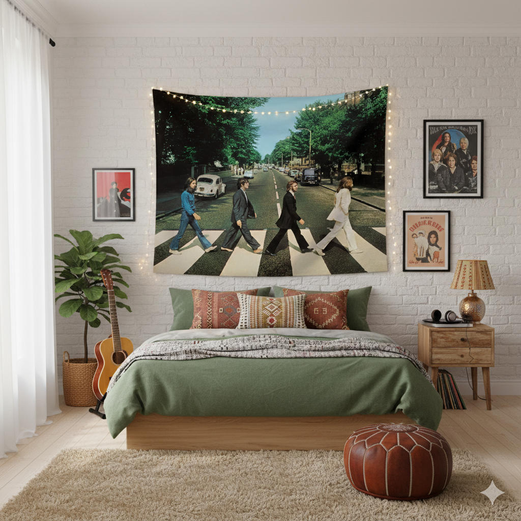 Un clásico eterno en tu pared. No es solo un tapiz, es un pedazo de la historia de la música. Esta pieza recrea la legendaria imagen de The Beatles cruzando Abbey Road, con una calidad de imagen nítida que captura cada detalle de la escena original.