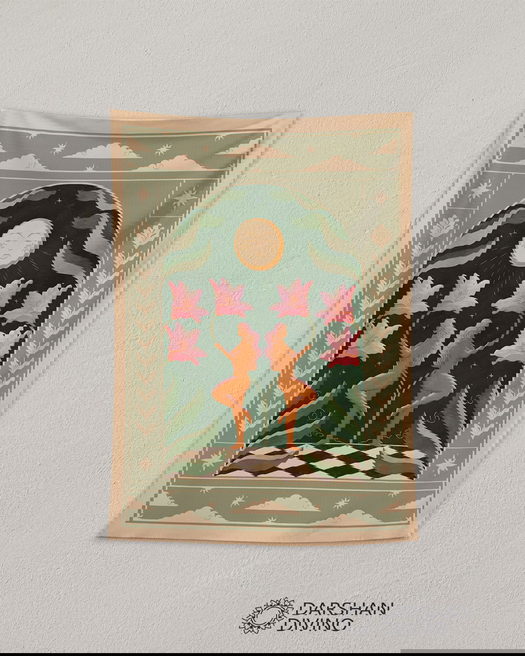 Encontrá tu equilibrio en el jardín del alma ✨🌸 Hay una magia especial en el reflejo. Nuestro tapiz #217 "Espejo" nos invita a mirar hacia adentro y reconocer nuestra propia luz. Con su diseño simétrico de figuras femeninas, flores vibrantes y un sol radiante, esta pieza es un recordatorio de que todo lo que florece afuera, primero nació en tu interior. Sus tonos verdes y durazno crean una atmósfera de paz absoluta. ¡Transformá tu espacio en un portal de armonía y crecimiento!